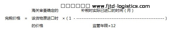 第三十二條  減稅或者免稅進(jìn)口的貨物應(yīng)當(dāng)補(bǔ)稅時(shí),應(yīng)當(dāng)以海關(guān)審查確定的該貨物原進(jìn)口時(shí)的價(jià)格,扣除折舊部分價(jià)值作為完稅價(jià)格,其計(jì)算公式如下: