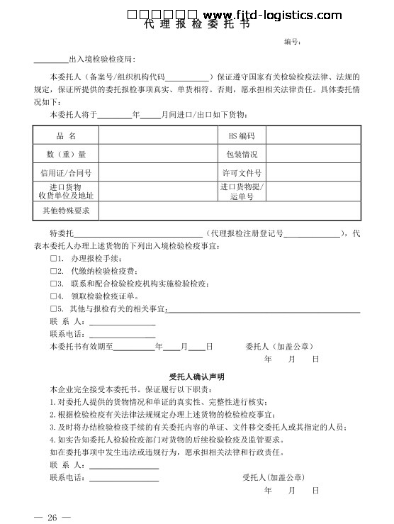 您現(xiàn)在的位置:首頁 >> 物流學堂 >> 報關指南>>FJTD代理報檢委托書(樣本下載)