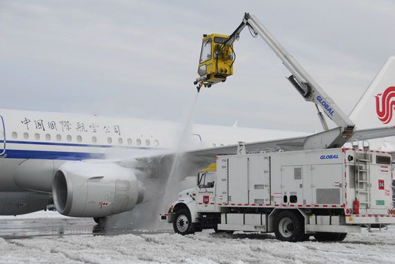 飛機除冰特種作業(yè)車:在寒冷的北方冬季,覆蓋在飛機表面的積雪很容易結冰,在飛機起飛前,必須進行除冰的工作。從事這種工作的師傅被稱為“除冰師”。