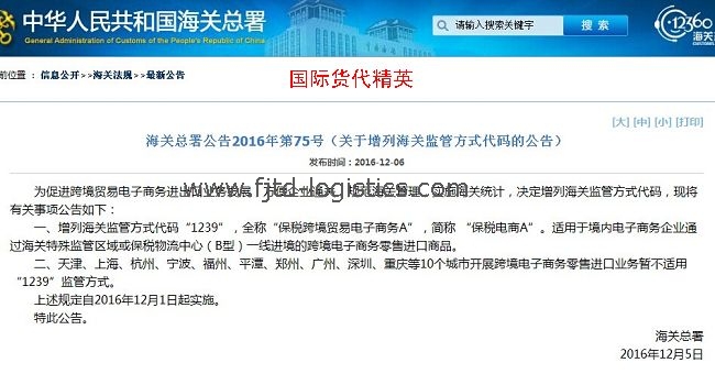 為促進跨境貿易電子商務進出口業(yè)務發(fā)展,方便企業(yè)通關,規(guī)范海關管理,實施海關統計,決定增列海關監(jiān)管方式代碼,增列海關監(jiān)管方式代碼“1239”,全稱“保稅跨境貿易電子商務A”,簡稱 “保稅電商A”。適用于境內電子商務企業(yè)通過海關特殊監(jiān)管區(qū)域或保稅物流中心(B型)一線進境的跨境電子商務零售進口商品。同時,天津、上海、杭州、寧波、福州、平潭、鄭州、廣州、深圳、重慶等10個城市開展跨境電子商務零售進口業(yè)務暫不適用“1239”監(jiān)管方式。此規(guī)定自2016年12月1日起實施。