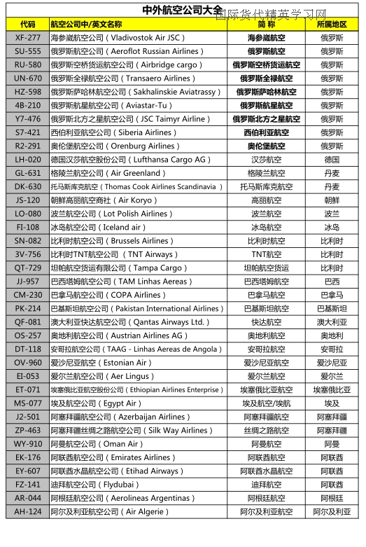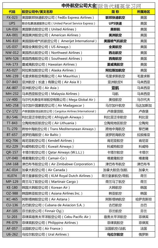 IATA代碼等4種常見(jiàn)空運(yùn)代碼例解(附中外航空公司大全